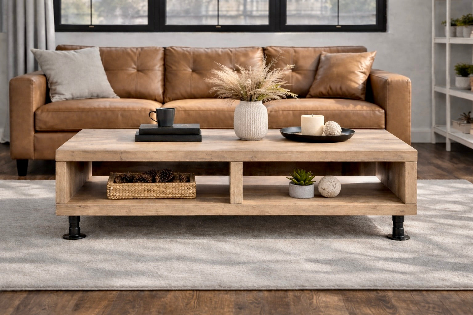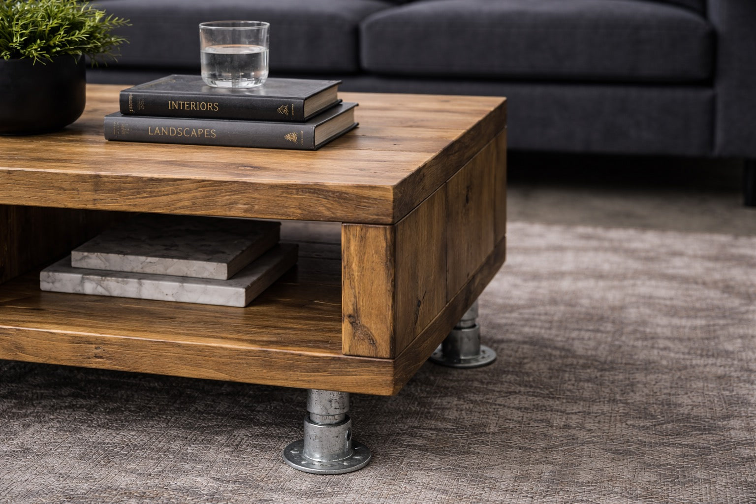 Both options deliver a strong industrial aesthetic that pairs beautifully with the timber.