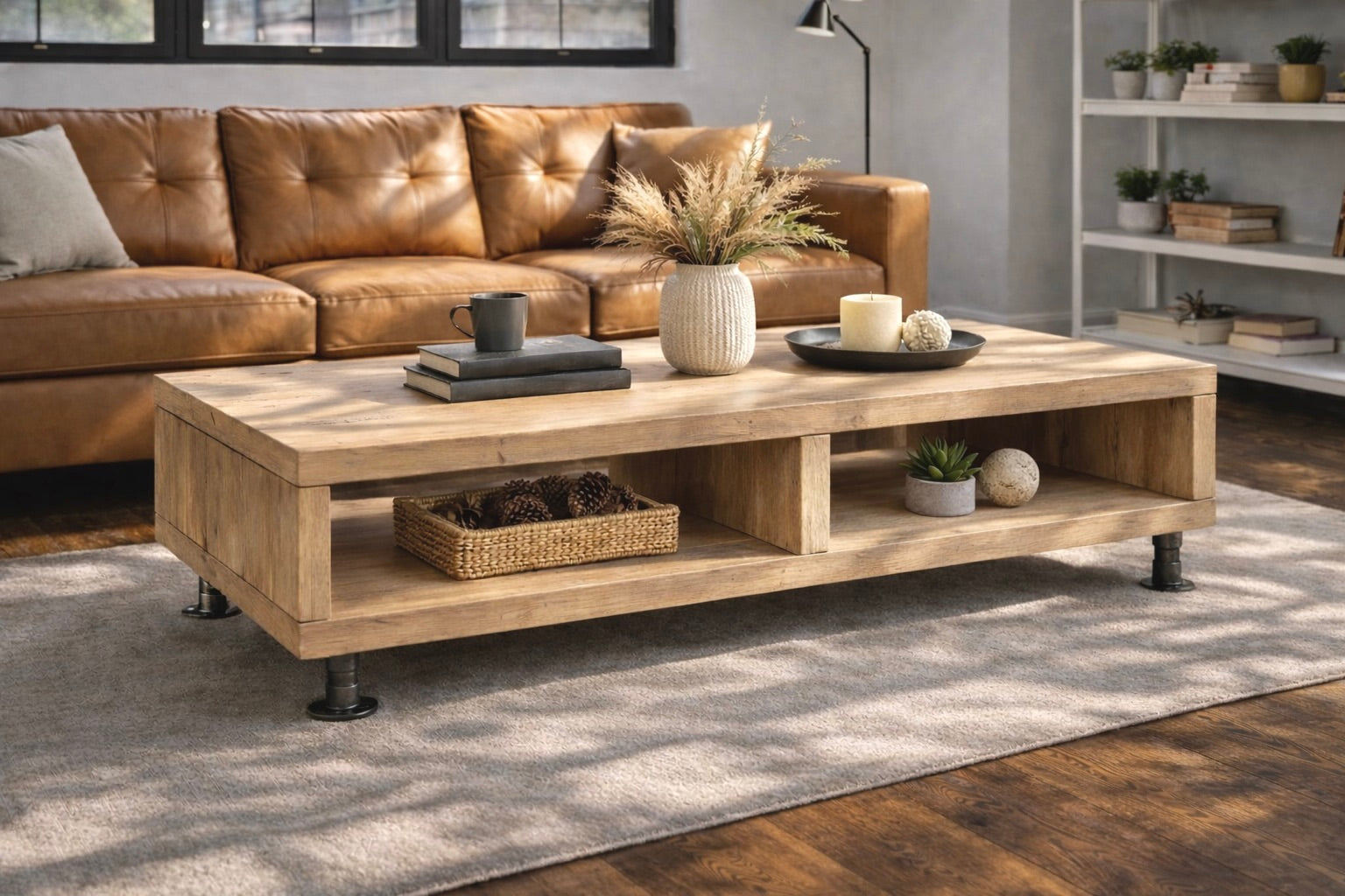 Coffee Table on Steel Tube Legs | Handmade, Rustic Style, Industrial Table
