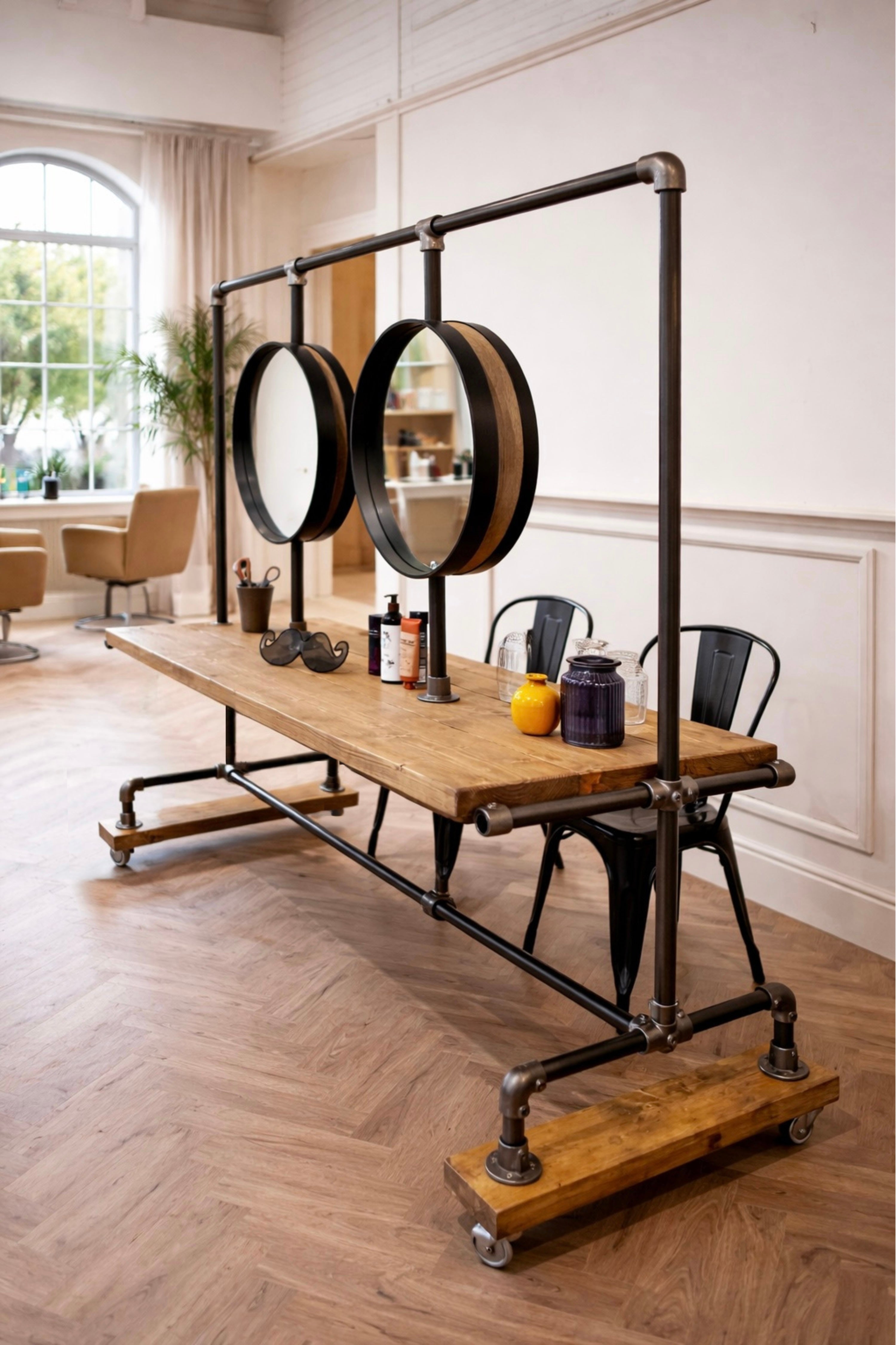 Industrial & handmade rustic salon unit. Double sided. Various size options, to seat up to 2, 4 or 6 people.