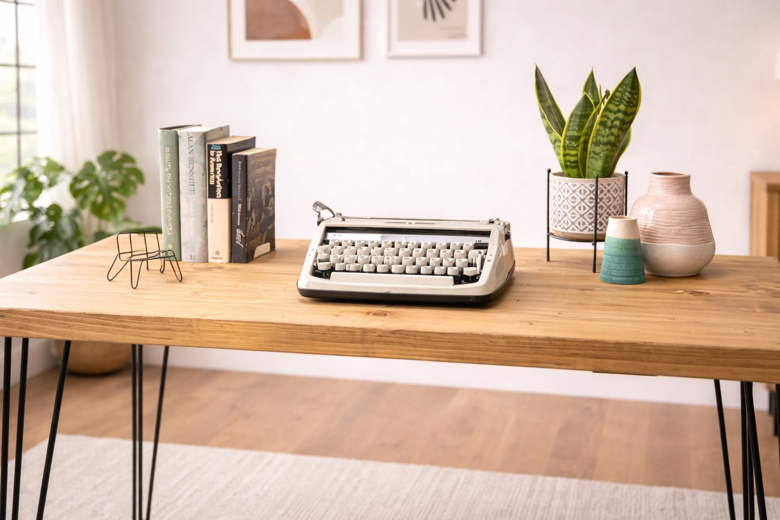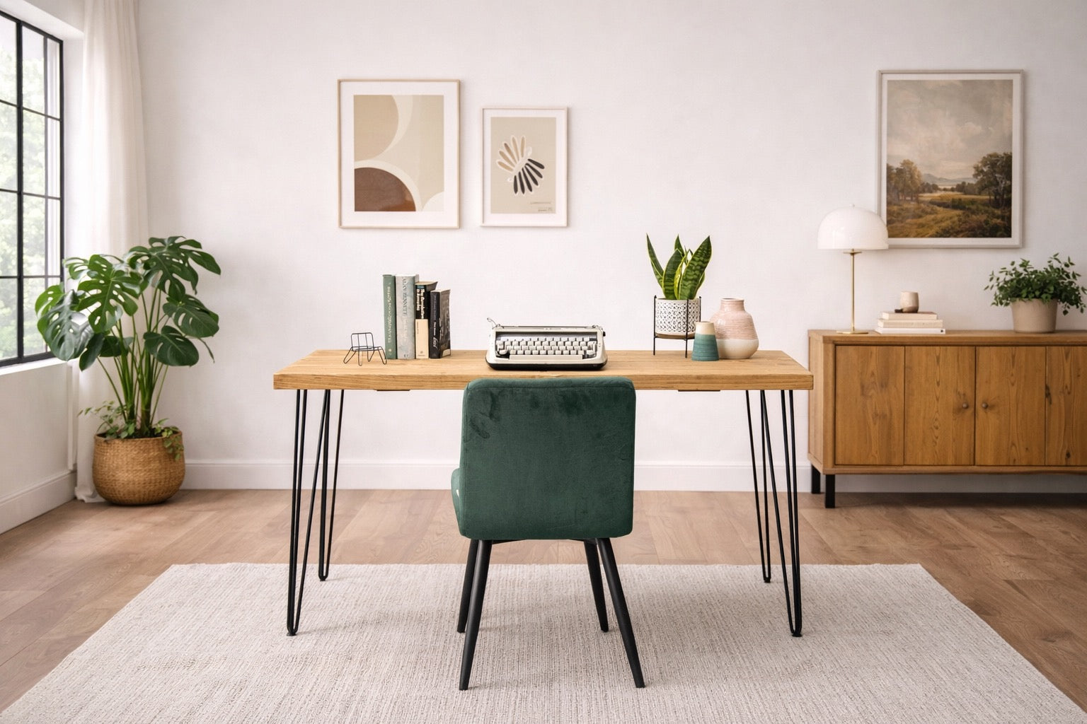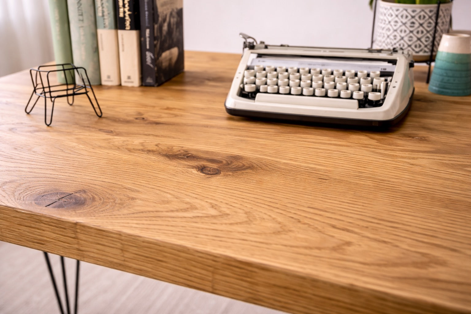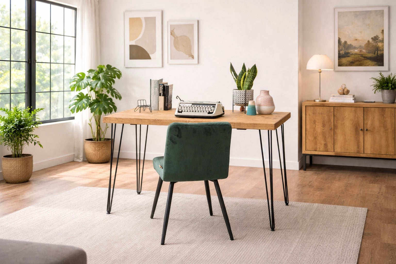 Rustic Solid Wooden Desk, Hairpin Steel Legs | Industrial Reclaimed Style