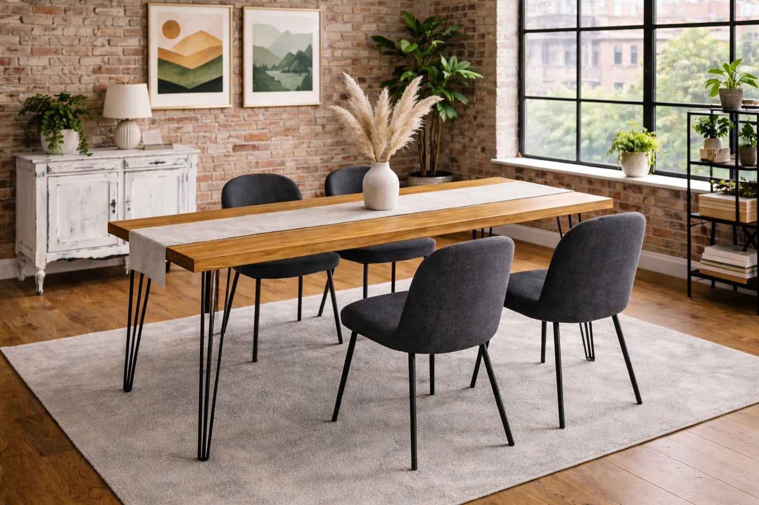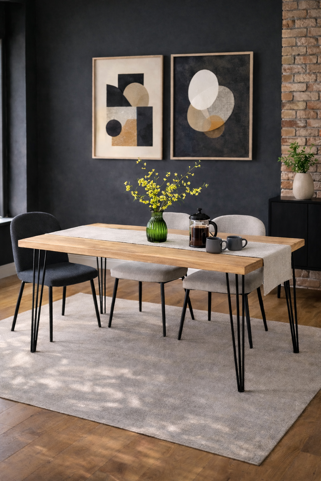 Rustic Dining Table & Bench Set on Hairpin Legs. Industrial Style