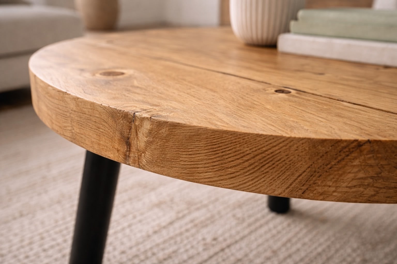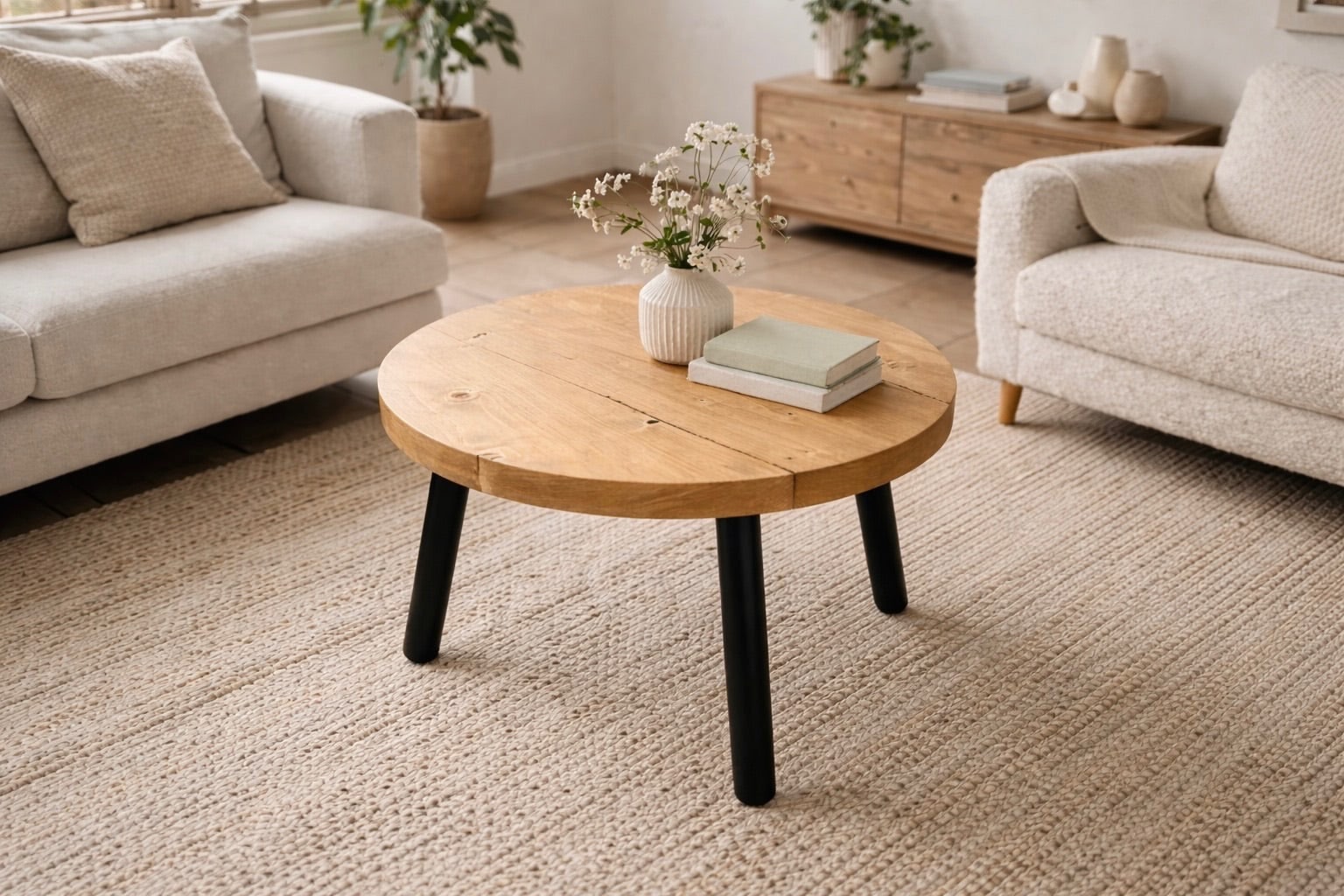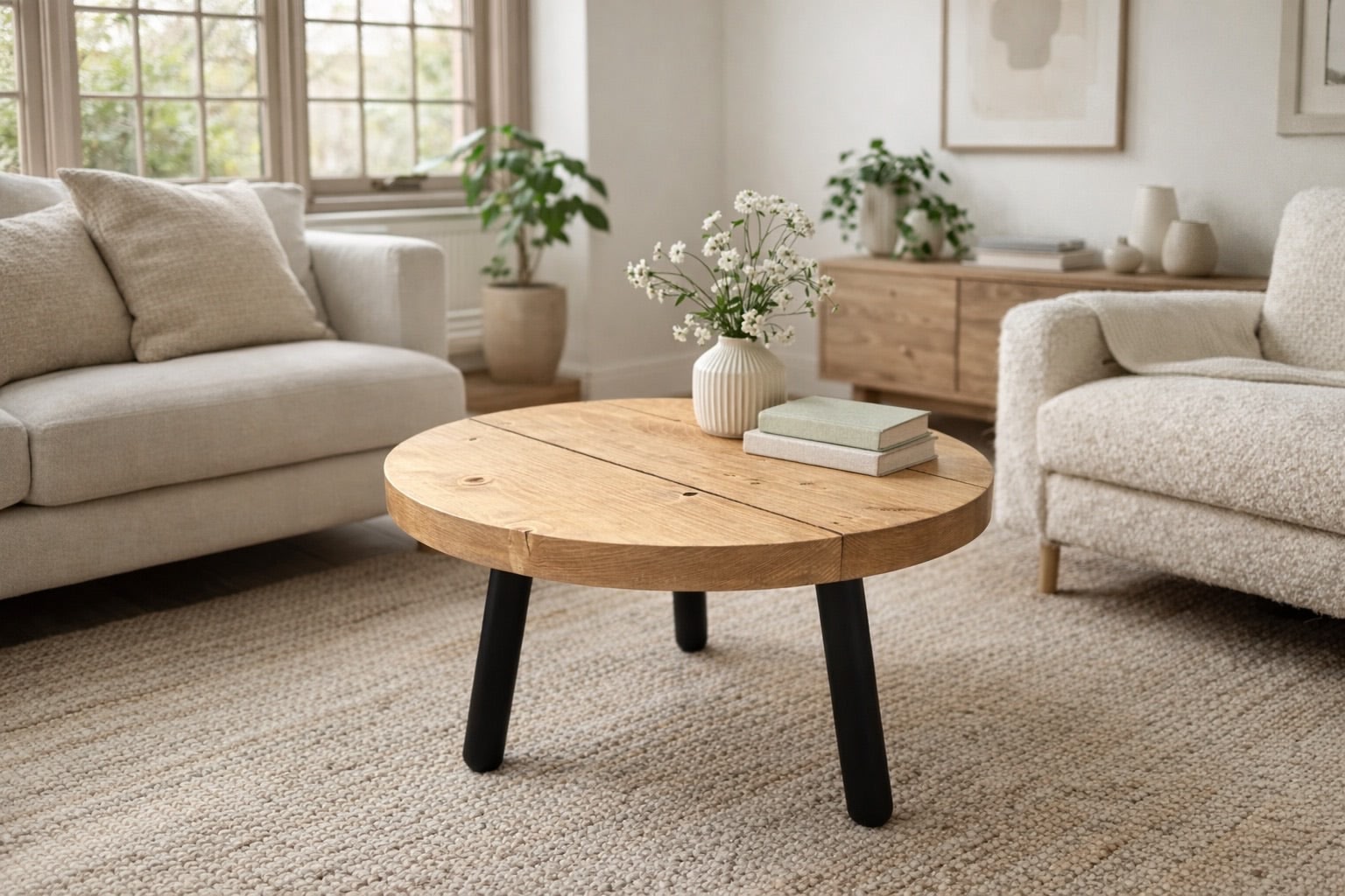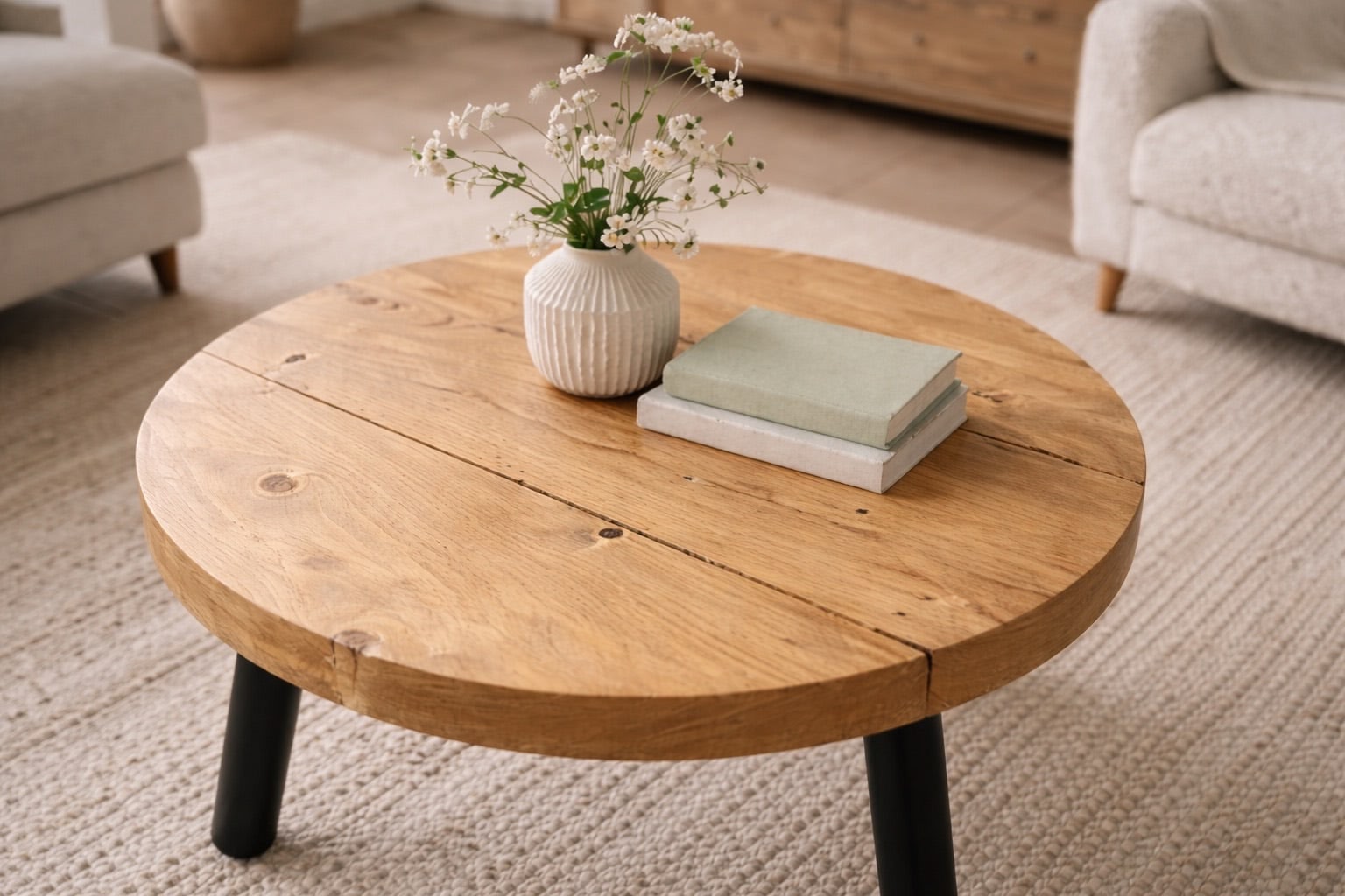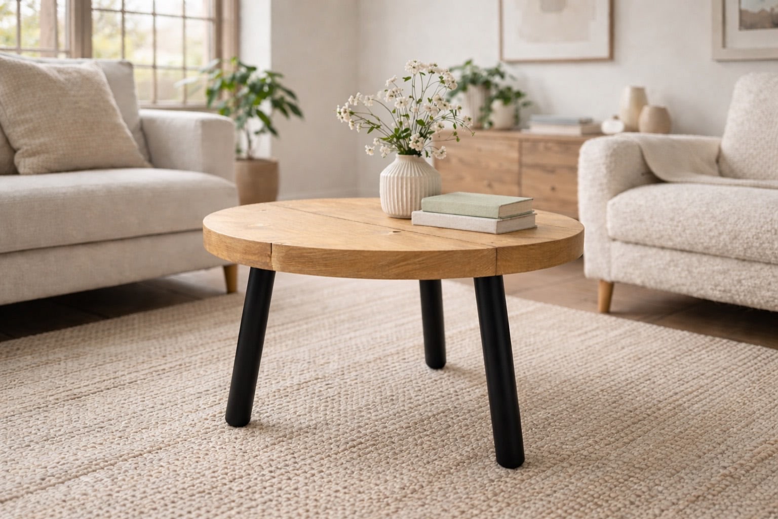 Circular Coffee Table with Steel Round Pin Legs