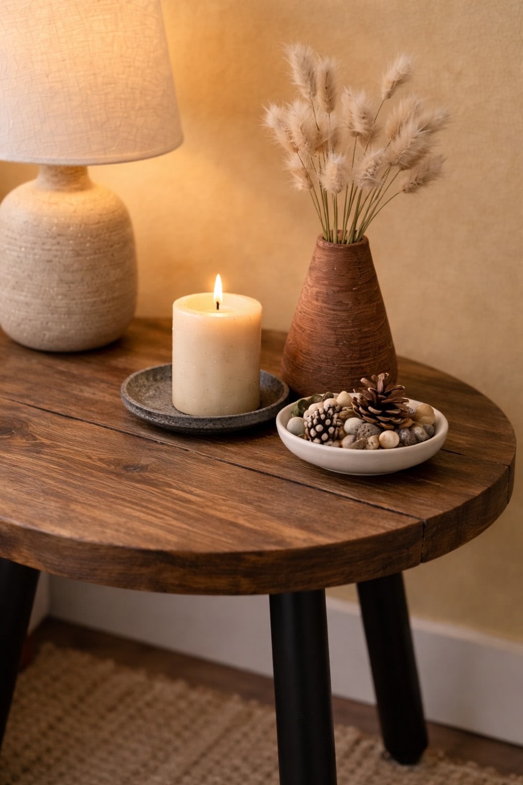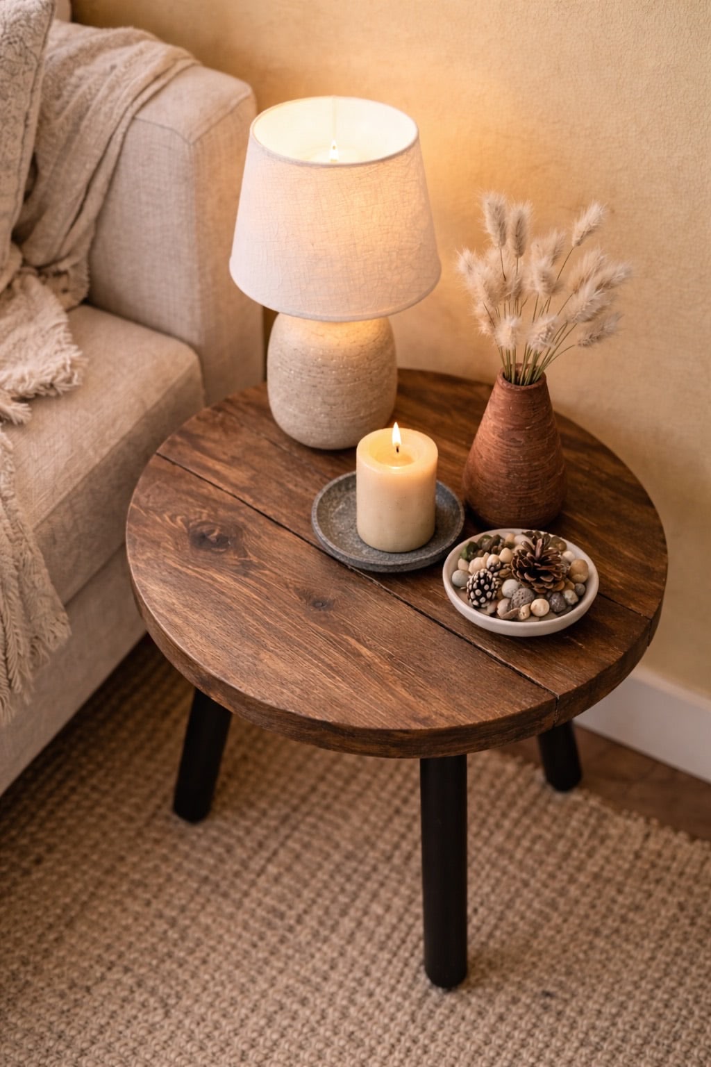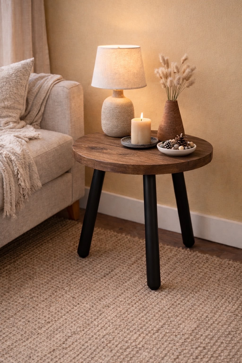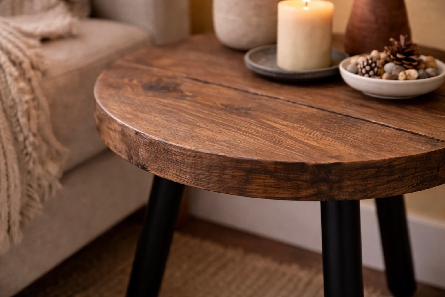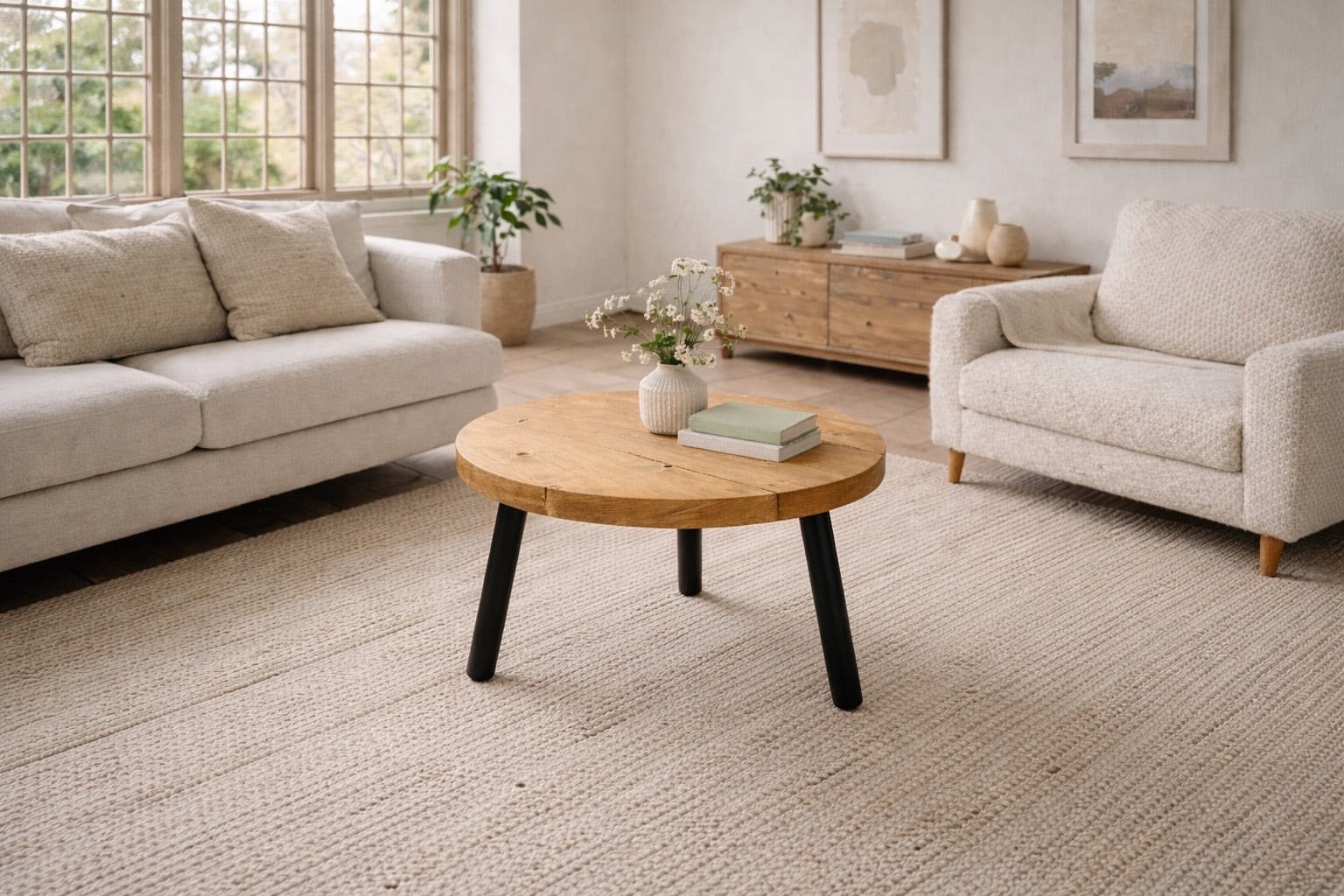 Circular Coffee Table with Steel Round Pin Legs