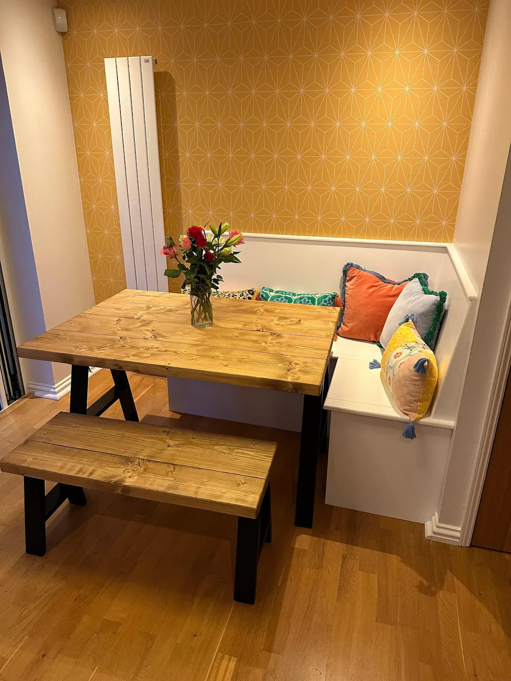 Benches can be made 30cm shorter than the table if you want them to tuck underneath – just let us know when ordering.
