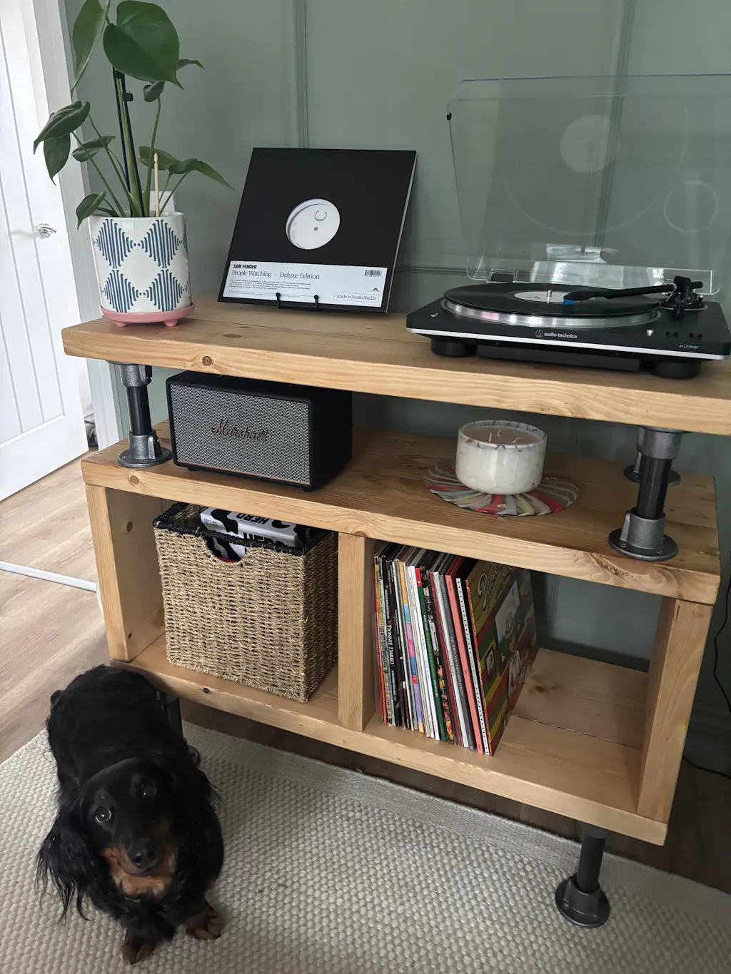 Industrial Record Player Stand. Vinyl Storage Cabinet