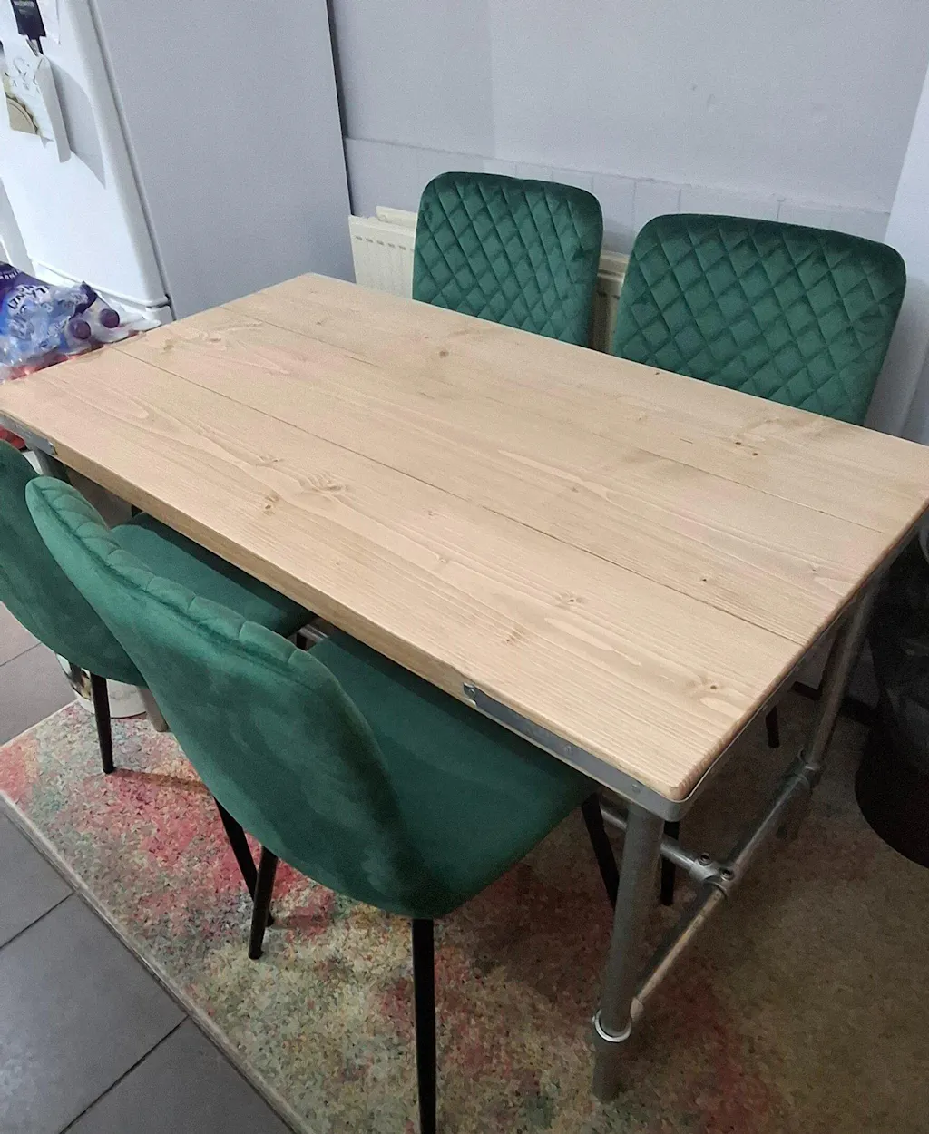 Rustic Dining Table & Bench on Steel Tube Pipe Legs. Industrial Style