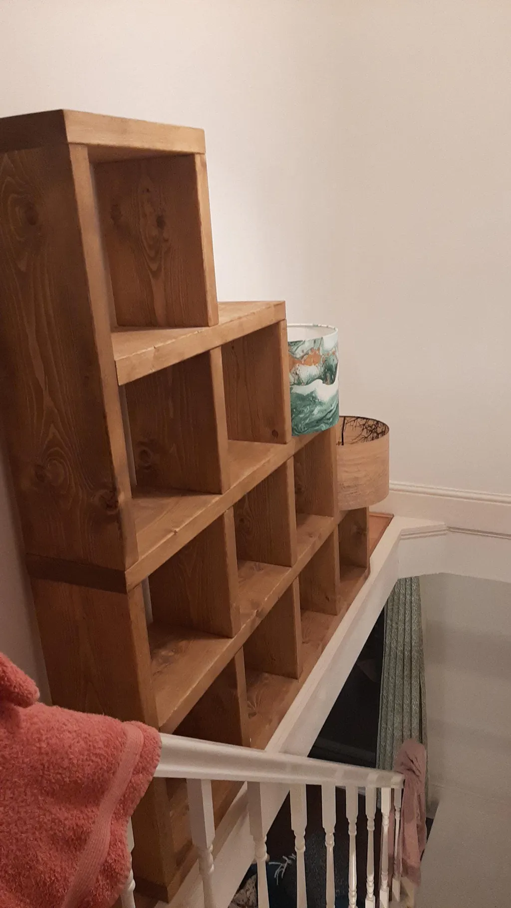 Rustic Step Bookcase | Shelving Unit | Reclaimed Style Solid Wooden Cube Bookshelves | Under Stairs Storage | Industrial Style Cabinet